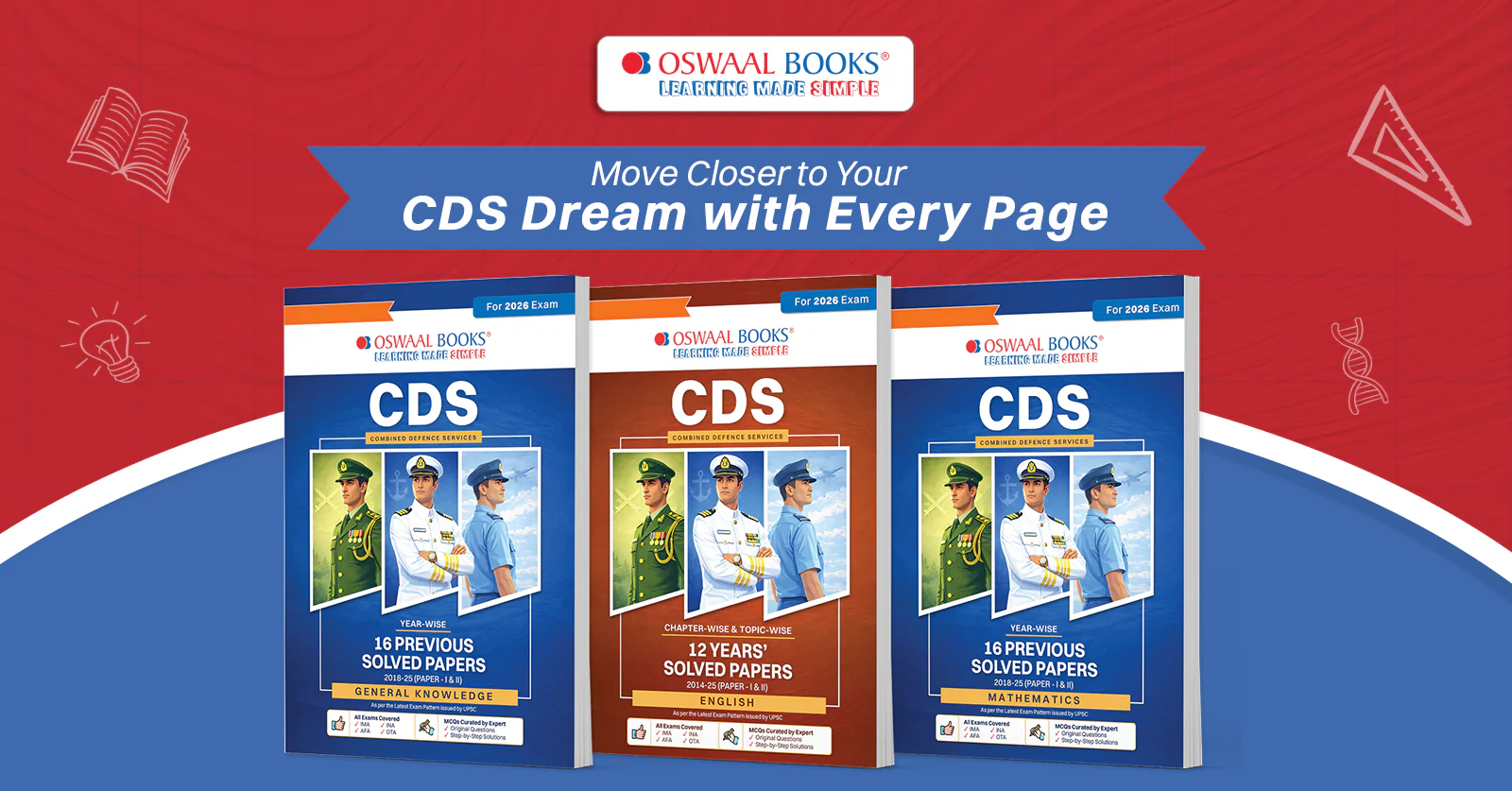 Structured study material is important for preparation. All sections are thoroughly covered in the Oswaal CDS Book 2026. Subject-wise CDS question paper aids in pinpointing your areas of weakness and enhancing your accuracy.