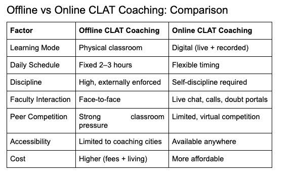 Offline vs Online CLAT Coaching: Which is Better for You?
