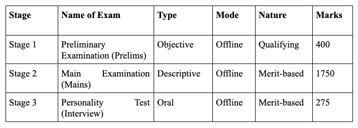 The UPSC Civil Services Examination consists of three stages: