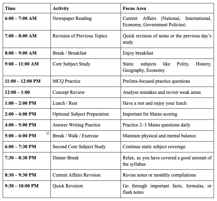 Daily Study Routine For UPSC CSE Prelims & Mains 2026