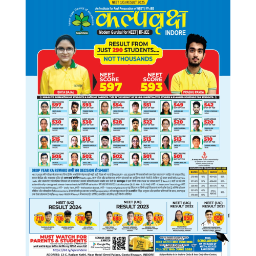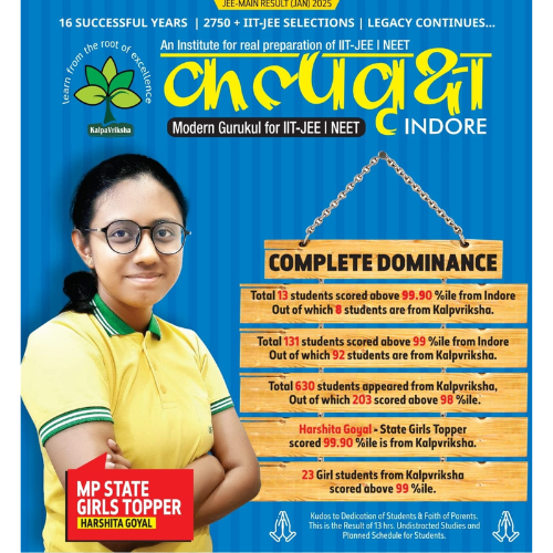 Kalpavriksha Institute, founded in 2010 by Vijit Jain (IIT Kharagpur) and Gitika Jain (SGSITS Indore), has become one of the fastest-growing and most trusted coaching institutes for IIT-JEE and NEET in Indore. Known as the Modern Gurukul, Kalpavriksha stands apart for its student-centric philosophy, motivational teaching methods, and consistent record of excellence.
