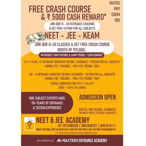 Our academy stands as a trusted name for students preparing for KEAM, NEET, JEE, CUET, NDA, IMU CET/DNS Sponsorship, CA, CMA, and ACCA programmes. With a legacy of delivering results and transforming ambitions into achievements, we combine structured academic training with personalized mentorship to help students reach their goals.