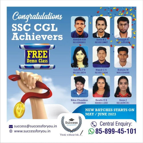 Success Academy Kochi is India's top online coaching that provides affordable and comprehensive learning experience to those who’ve or about to completed their graduation and looking to get a government job. We also provide extensive practice platform for the students so that they can beat the competition and secure good ranks.