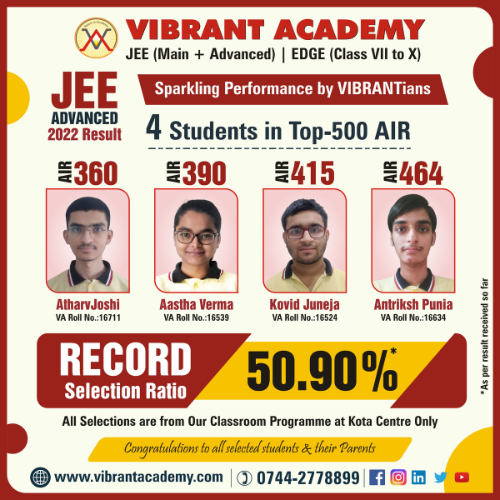 Vibrant Academy is renowned for its structured coaching and expert guidance in IIT-JEE preparation, helping students secure top ranks across India.