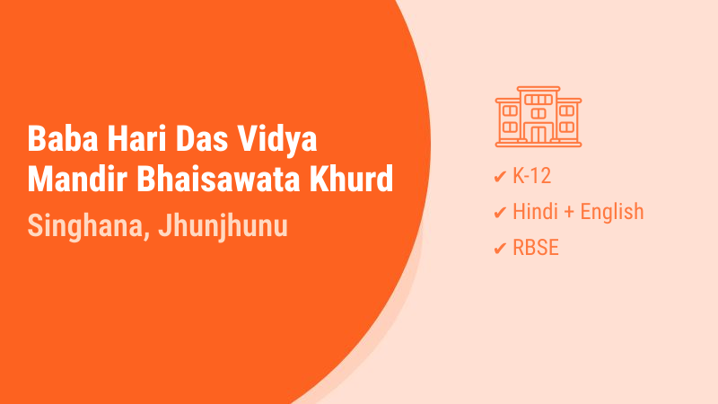 Baba Hari Das Vidya Mandir (BABA H.D.V.M. BHAISAWATA KHURD) is a well-established educational institution located in Bhaisawata Khurd village of Singhana block in Jhunjhunu district, Rajasthan. Founded in 1992, this school has been serving the educational needs of the rural community for over three decades. The school operates under the Rajasthan Board of Secondary Education (RBSE) for both K10 and K12 levels, offering comprehensive education from primary to senior secondary classes.