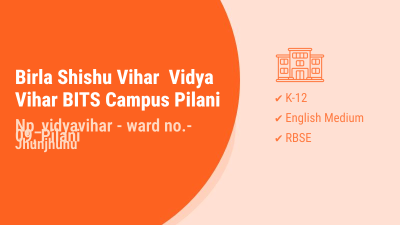 Birla Shishu Vihar Pilani Vidya Vihar is a prestigious educational institution established in 1953, located within the renowned BITS Campus in Pilani, Jhunjhunu district of Rajasthan. With over seven decades of educational excellence, this Rajasthan Board of Secondary Education (RBSE) affiliated school has built a strong reputation as one of the best K-12 schools in the region. The school is strategically situated in Vidya Vihar, providing students with an academic environment that fosters both traditional values and modern learning methodologies. Operating under the medium of English instruction, the institution caters to students from kindergarten through grade 12, offering a comprehensive educational journey. The school boasts an impressive infrastructure with 40 well-equipped classrooms, modern laboratories including computer and robotics labs, and a well-stocked library. Technology integration is evident through digital boards and projectors in classrooms, enhancing the learning experience. The faculty comprises 61 dedicated educators, with 47 holding post-graduate qualifications, ensuring high-quality instruction and mentorship. The school maintains excellent facilities including separate washroom facilities for boys and girls, medical facilities, kids play area, and proper boundary walls ensuring student safety. With a 100% selection ratio and strong academic outcomes, parents can be confident about their child's educational future. The school's location within the BITS campus provides additional academic exposure and opportunities for students to experience higher education environment.