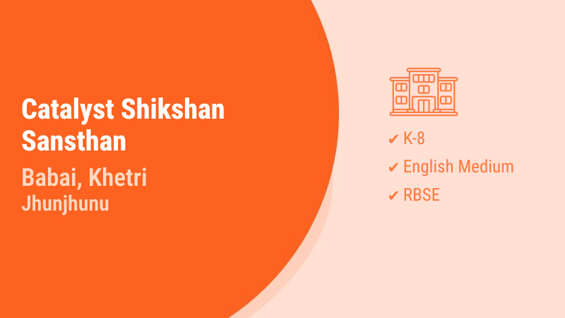 Catalyst Shikshan Sansthan is a co-educational primary school established in 2018, located in VPO Babai, Khetri, Jhunjhunu district of Rajasthan. The school follows the Rajasthan Board of Secondary Education (RBSE) curriculum and provides education up to class 8. With a 100% selection ratio, the institution demonstrates strong academic commitment under the leadership of headmaster Ramniwas.