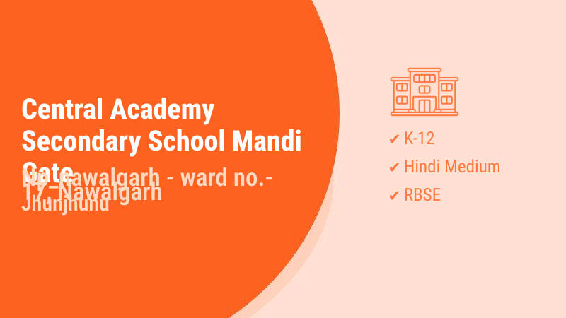 Central Academy Secondary School, established in 1996, is a premier educational institution located in Mandi Gate, Nawalgarh, Jhunjhunu district of Rajasthan. This co-educational school operates under the Rajasthan Board of Secondary Education (RBSE) and offers comprehensive K-12 education in Hindi medium. With over 25 years of educational excellence, the school has built a strong reputation as one of the best K-12 schools in Nawalgarh region.