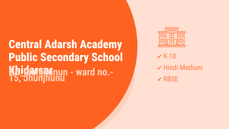 Central Adarsh Academy Public Secondary School, located in Khidarsar, Jhunjhunu, Rajasthan, has been serving the educational needs of the community since 1996. As a well-established institution with nearly three decades of experience, the school is affiliated with the Rajasthan Board of Secondary Education (RBSE) and offers quality education in Hindi medium through offline mode.