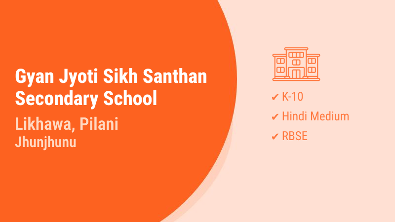 Gyan Jyoti Sikh Santhan Secondary School Likhawa is a well-established educational institution located in Likhawa village, Pilani block of Jhunjhunu district, Rajasthan. Founded in 2000, this Hindi medium school has been serving the local community for over two decades, providing quality education to students up to Class 10 under the Rajasthan Board of Secondary Education (RBSE). The school operates with a dedicated team of 5 regular faculty members, including 4 postgraduate and 1 graduate teacher, ensuring a balanced student-teacher ratio for personalized attention. With 10 well-maintained classrooms and separate toilet facilities for boys and girls, the school creates a conducive learning environment. The institution is led by Head Master Veer Singh and maintains strong community connections through contact person Vijay Kumar. Located in the educational hub of Pilani, the school benefits from the academic atmosphere of the region while serving the rural population of Likhawa. The school's commitment to inclusive education is evident through its co-educational setup and basic medical facilities. With a remarkable 100% selection ratio, the school has established itself as a reliable choice for primary and secondary education in the area. The school's motto reflects the Sikh community values while welcoming students from all backgrounds, fostering an environment of unity and academic excellence.