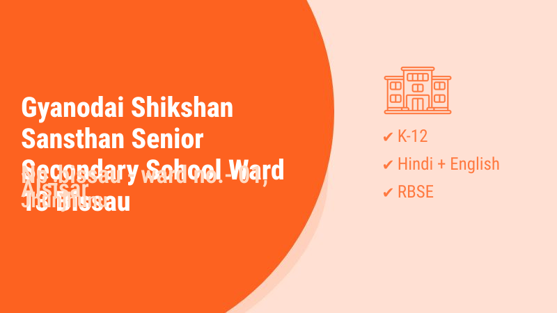 Gyanodai Shikshan Sansthan Senior Secondary School, established in 2001, is a prominent educational institution located in Ward 13, Jagatpura, Bissau, in the Jhunjhunu district of Rajasthan. This co-educational school operates under the Rajasthan Board of Secondary Education (RBSE) and offers comprehensive K-12 education in both Hindi and English medium. With over two decades of educational excellence, the school has earned recognition as the best K-12 school in the Alsisar region of Jhunjhunu. The institution is committed to providing quality education with a dedicated faculty of 24 members, including 18 postgraduate teachers, ensuring high academic standards. The school maintains a remarkable 100% selection ratio, reflecting its commitment to student success. Located in the Alsisar block, the school serves the local community with modern educational facilities and infrastructure. The school's comprehensive approach to education combines traditional values with contemporary teaching methods, preparing students for future challenges. With 21 well-equipped classrooms and essential facilities, the institution focuses on holistic development of students. The school's website and digital presence demonstrate its commitment to staying current with technological advancements in education.
