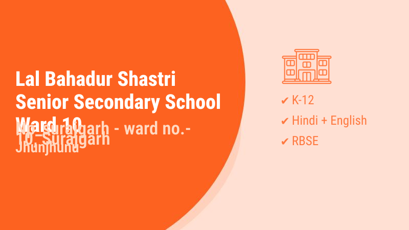 Lal Bahadur Shastri Senior Secondary School Ward 10, established in 1993, is a reputable educational institution located in Surajgarh, Jhunjhunu district, Rajasthan. Named after India's former Prime Minister Lal Bahadur Shastri, the school upholds values of simplicity, dedication, and excellence in education. The school is affiliated with the Rajasthan Board of Secondary Education (RBSE) for both secondary and senior secondary levels, ensuring students receive quality education aligned with state curriculum standards. With over three decades of educational service, the institution has built a strong foundation in the local community. The school offers coeducational learning environment with both Hindi and English medium instruction, making quality education accessible to students from diverse backgrounds. The campus features 18 well-maintained classrooms providing adequate space for learning activities. Essential facilities include a library for academic resources, separate washroom facilities for boys and girls, and dedicated play areas including a kids play area for younger students. The school maintains proper security with boundary walls and provides first aid facilities for student safety. Under the leadership of Head Master Satyaveer Singh, the institution is managed by a balanced faculty team of 8 members, equally comprising male and female teachers with graduate and post-graduate qualifications. The school's commitment to inclusive education is evident through its coeducational system and bilingual instruction approach, making it a preferred choice for parents seeking quality education in the Surajgarh area.