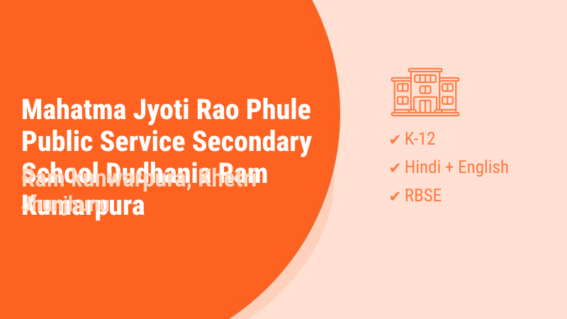 Mahatma Jyoti Rao Phule Public Service Secondary School Dudhania, established in 1999, is a distinguished educational institution located in Ram Kumarpura village, Khetri tehsil, Neem ka Thana district of Rajasthan. Named after the great social reformer Jyotirao Phule, this school embodies values of equality and quality education for all students.