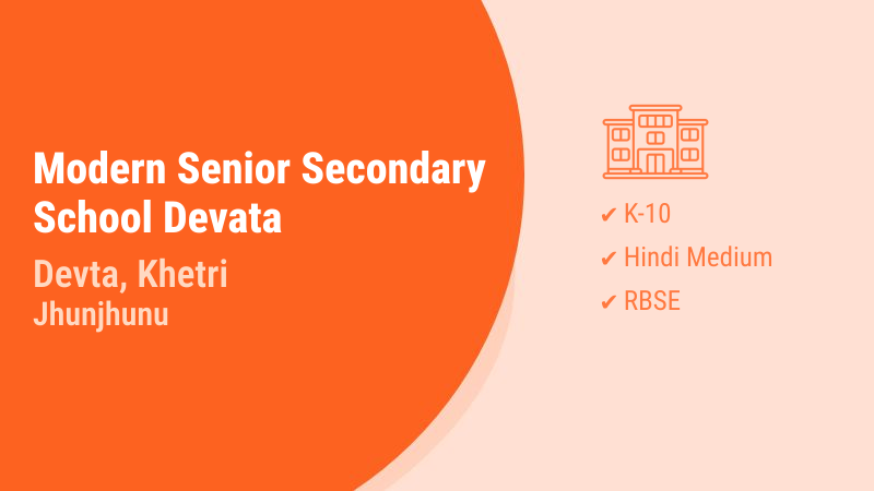 Modern Senior Secondary School Devata, established in 2001, is a prominent educational institution located in Devta village, Khetri block of Neem Ka Thana district in Jhunjhunu, Rajasthan. The school operates under the Rajasthan Board of Secondary Education (RBSE) and offers quality education up to the 10th standard. With Hindi as the primary medium of instruction, the school caters to the local community's educational needs while maintaining high academic standards.