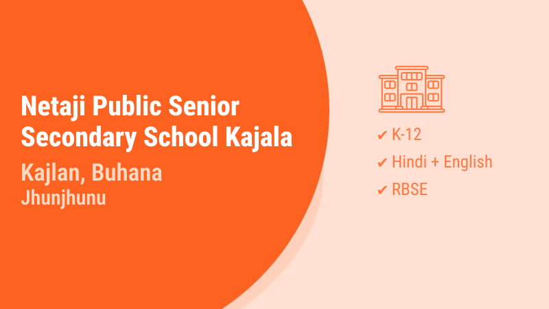 Netaji Public Senior Secondary School Kajala is a well-established educational institution located in the Buhana block of Jhunjhunu district, Rajasthan. Founded in 2004, this school has been serving the educational needs of the local community for over two decades. The school is affiliated with the Rajasthan Board of Secondary Education (RBSE) for both Class 10 and Class 12 examinations, offering comprehensive K-12 education in both Hindi and English mediums. With a dedicated faculty of 12 teachers, including 7 postgraduates and 5 graduates, the school maintains a healthy student-teacher ratio. The teaching staff comprises 8 female and 4 male teachers, all working on contract basis, ensuring diverse perspectives in education delivery. The school operates from a well-structured campus with 13 classrooms and essential facilities including separate washroom facilities for boys and girls, a library for academic resources, and a play area for physical activities. Medical facility is available on campus to handle emergencies and ensure student safety. The school has maintained an impressive 100% selection ratio, demonstrating its commitment to academic excellence. Located in Kajlan village with postal code 333034, the school is easily accessible to students from surrounding areas. Under the leadership of Principal Rajesh Kumar and with Satish Kumar as the contact person, the institution focuses on holistic development of students while maintaining strong academic standards.