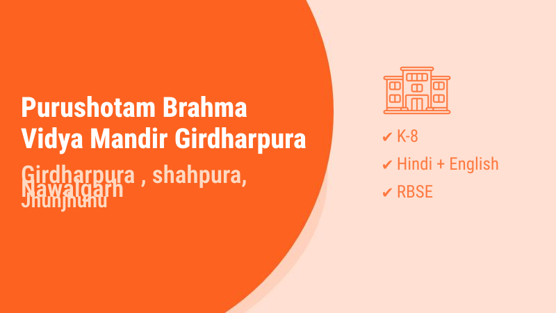 Purushotam Brahma Vidya Mandir Girdharpura is a well-established educational institution located in the rural area of Girdharpura, Shahpura, Nawalgarh in Jhunjhunu district of Rajasthan. Founded in the year 2000, this school has been serving the educational needs of the local community for over two decades. The school is affiliated with the Rajasthan Board of Secondary Education (RBSE) and offers quality education from primary to upper primary levels (K-8). With a commitment to providing accessible education in both Hindi and English mediums, the school caters to diverse linguistic preferences of students and families in the region. The institution operates under the leadership of Head Master Gopal Ram Saini and maintains a focused approach towards holistic development of students. The school boasts a dedicated faculty of 3 teachers, including 2 regular and 1 contract teacher, all of whom are male educators with strong academic backgrounds - 1 graduate and 2 post-graduates. The campus features 7 well-maintained classrooms providing adequate learning spaces for students. The school emphasizes creating a safe and inclusive learning environment with separate toilet facilities for boys and girls, ensuring privacy and hygiene. With a remarkable 100% selection ratio in results, the institution demonstrates its commitment to academic excellence and student success, making it a trusted choice for parents seeking quality education for their children in the Nawalgarh region.