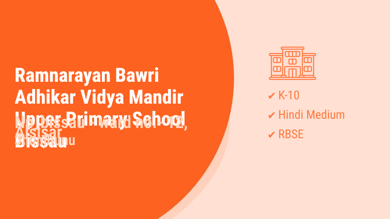 Ramnarayan Bawri Adhikar Vidya Mandir Upper Primary School, Bissau is a well-established educational institution located in Ward No. 20, NP Bissau, Alsisar block of Jhunjhunu district, Rajasthan. Founded in 1984, this Hindi medium school has been serving the local community for nearly four decades, building a strong reputation for quality primary education. The school operates under the Rajasthan Board of Secondary Education (RBSE) and caters to students up to Class 10.